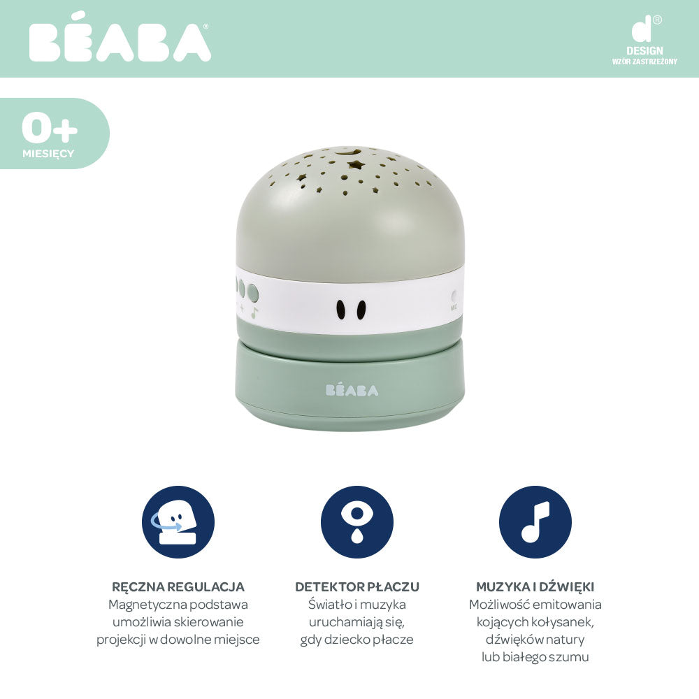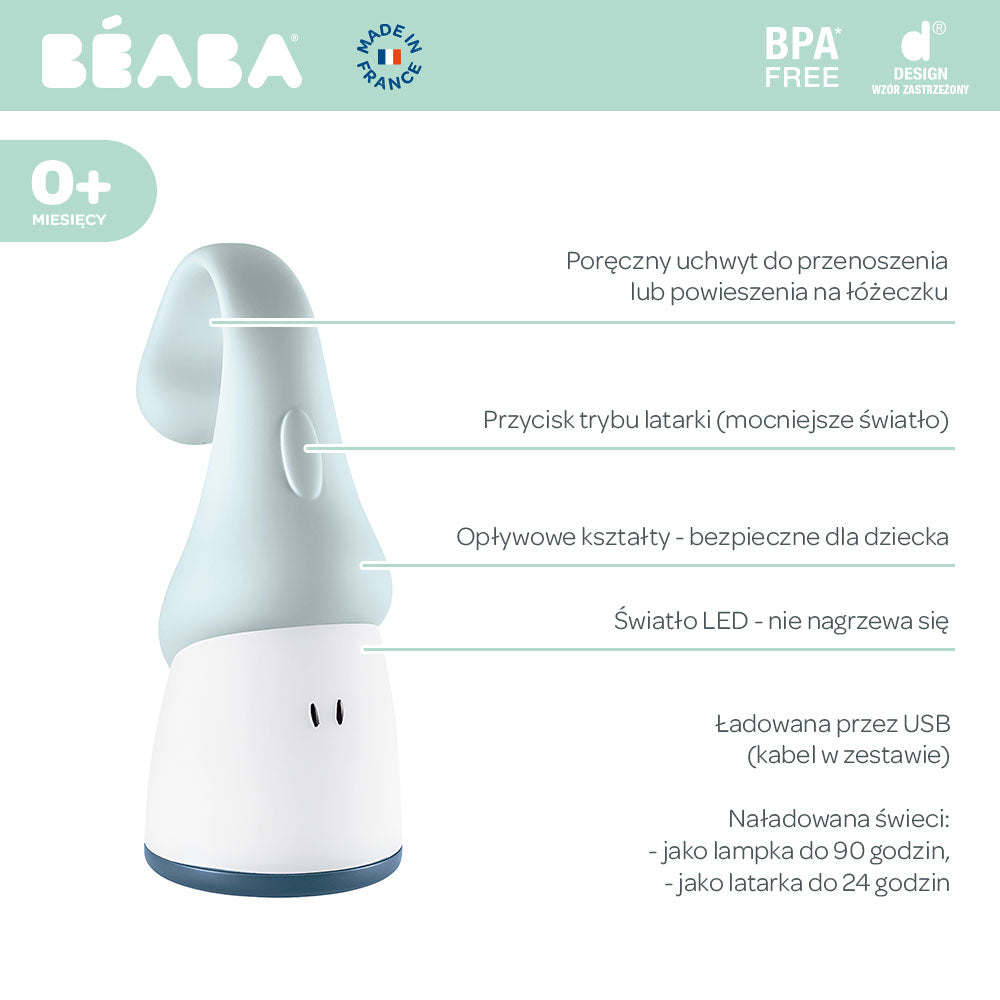 Beaba - Lampka nocna LED przenośna z latarką Pixie, sage green