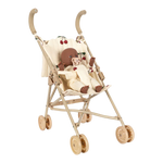Wózek dla lalki zaprojektowany z pasami bezpieczeństwa, torbą do wózka oraz podwójnymi kołami na wszystkich czterech nogach dla dodatkowej stabilności. Posiada zdejmowaną tkaninę. Przyjeżdża w pełni złożony, łatwy do złożenia i przechowywania. Rama wykonana jest z żelaza, a uchwyty są miękkie i gąbczaste.