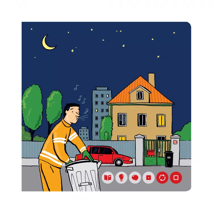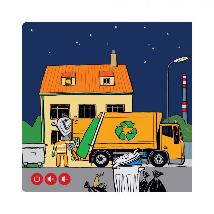 Książka ta opowiada o tym, jak ważna jest dla nas praca śmieciarzy. Dzieci dowiadują się, jakim pojazdem jeżdżą, o której godzinie muszą wstać rano i co dzieje się ze śmieciami oraz w jaki sposób możesz chronić nasze środowisko. Na kartach znajdziesz liczne ciekawostki, dialogi i quizy sprawdzające wiedzę.