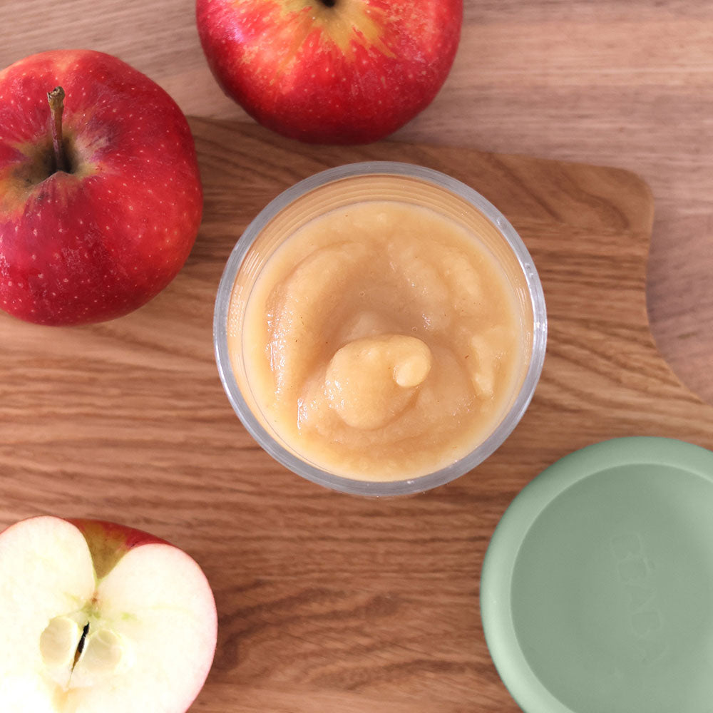 Czytelna miarka w mililitrach i uncjach ułatwia odmierzanie odpowiedniej porcji jedzenia, co jest szczególnie wygodne podczas rozszerzania diety. Hermetyczna silikonowa pokrywka szczelnie przylega do słoiczka, dzięki czemu posiłki zachowują świeżość, smak i aromat. Jej profil pozwala ustawiać pojemniki jeden na drugim, a specjalne uchwyty ułatwiają szybkie zdejmowanie pokrywki.