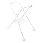 Solidna konstrukcja oraz duże, antypoślizgowe stopki gwarantują stabilność zarówno wanienki, jak i przewijaka mocowanych do stojaka. Szeroki rozstaw nóg i specjalne uchwyty zapewniają bezpieczne, pewne zamocowanie elementów. Stojak składa się szybko i kompaktowo, co sprawia, że idealnie sprawdza się w małych przestrzeniach i jest wygodny w przechowywaniu oraz przenoszeniu.