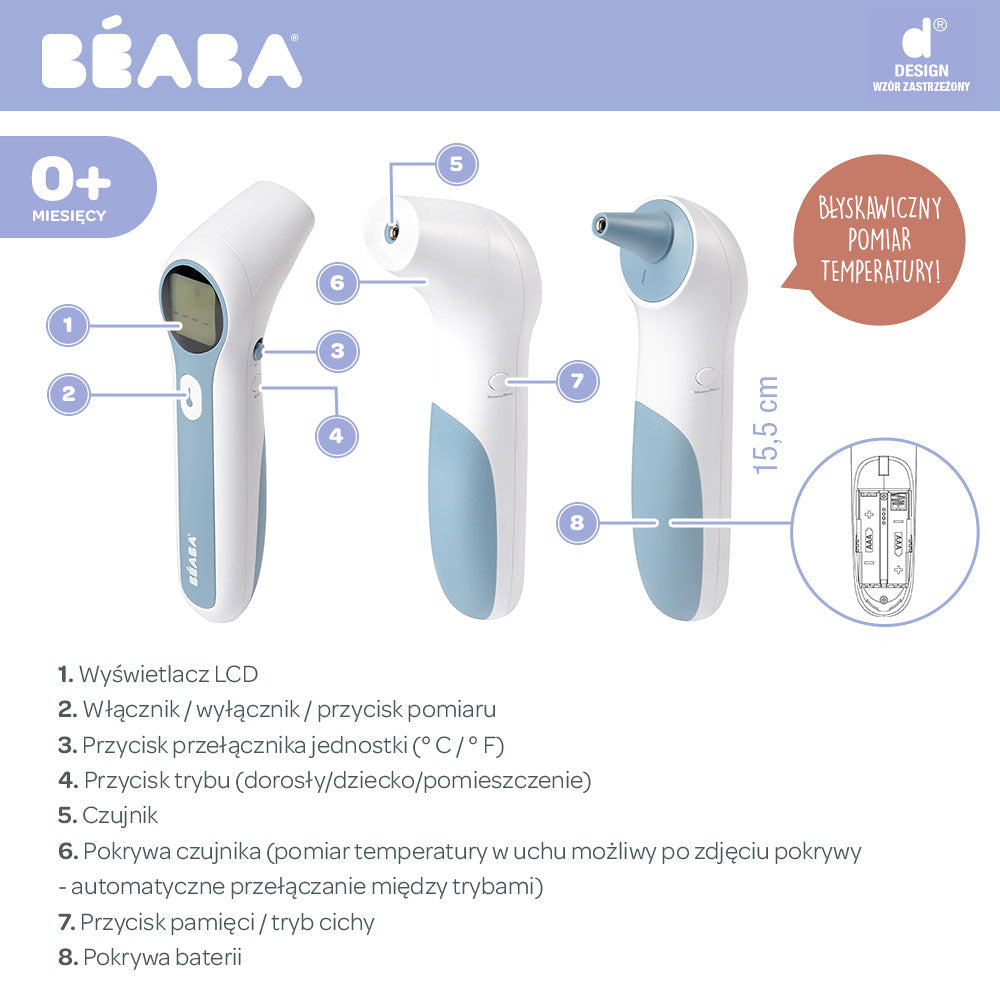 Beaba - Lampka nocna LED przenośna z latarką Pixie, blue