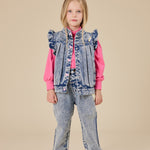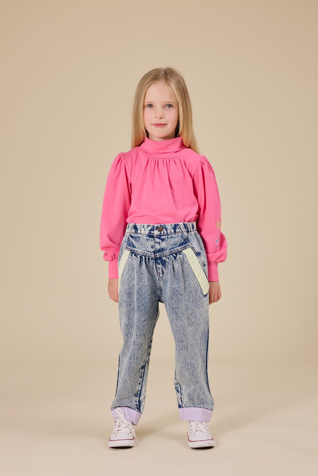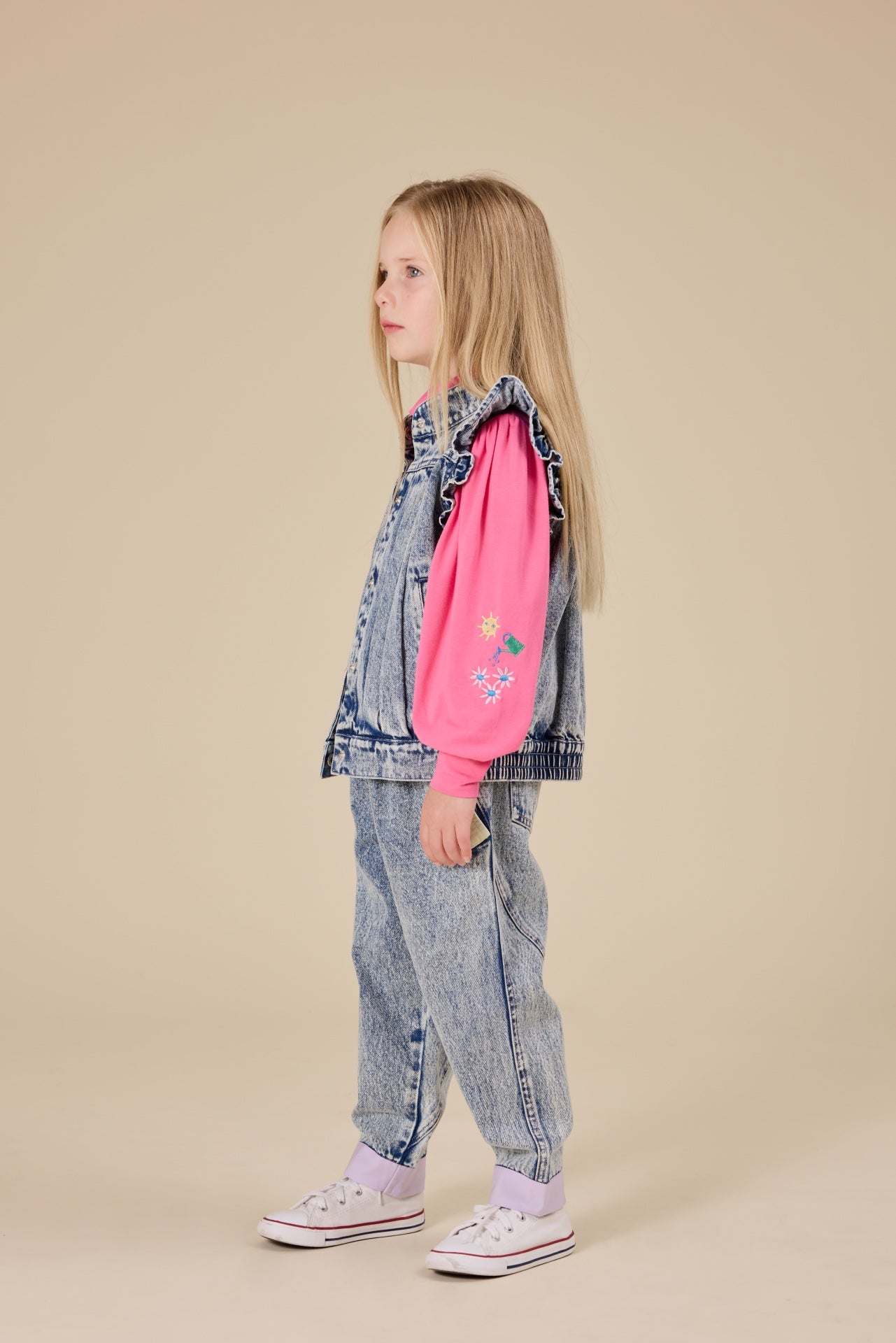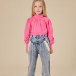 Goldie + Ace - Dziewczęca bluzka z haftem i bufiastymi rękawami