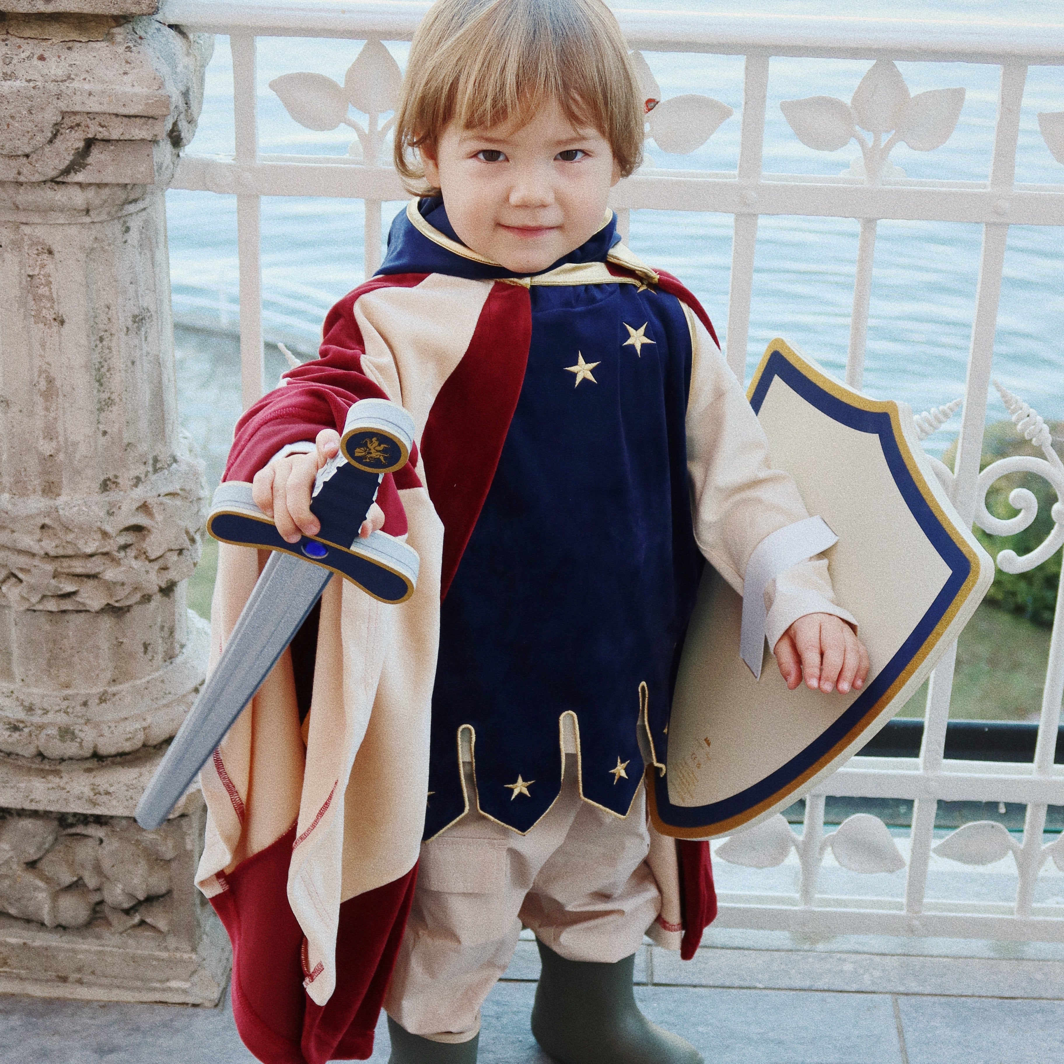 Zestaw miecza i tarczy wykonany z lekkiej, miękkiej pianki EVA to bezpieczna propozycja dla małych rycerzy i księżniczek. Dzięki miękkiej strukturze akcesoria są wygodne w zabawie, a jednocześnie wystarczająco trwałe, by towarzyszyć w codziennych przygodach. Idealnie komponują się z kostiumami rycerza i księżniczki z tej samej kolekcji, tworząc komplet na przebieranki, bale i kreatywną zabawę w domu.