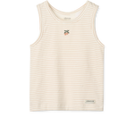 Lekki i oddychający top na ramiączkach wykonany w 95% z bawełny organicznej z certyfikatem GOTS. Miękka dzianina zapewnia wygodę noszenia na co dzień, a ponadczasowe nadruki i subtelne hafty dodają mu uroku. To uniwersalny element garderoby – świetnie sprawdzi się samodzielnie w ciepłe dni lub jako baza do warstwowych stylizacji.