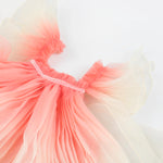 • Sukienka wróżki wykonana z warstwowanej, różowej i kości słoniowej organzy z plisowanym ombre, z różowymi aksamitnymi detalami i podszyciem z bawełny poliestrowej