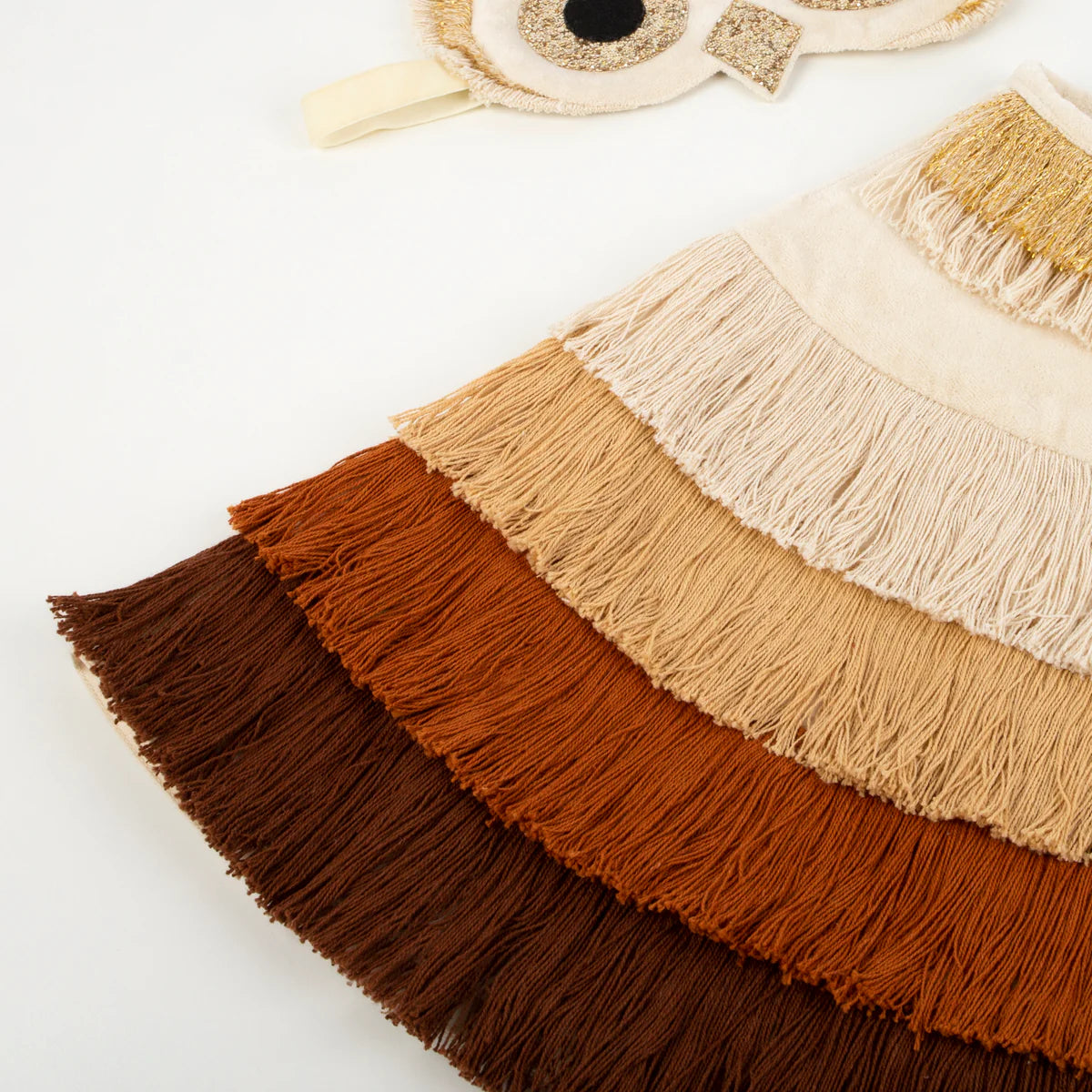 Hoo-hoo! Nasz niesamowity kostium sowy to coś naprawdę wyjątkowego! Został starannie zaprojektowany i wykonany z misternymi frędzlami na pelerynie oraz nakryciu głowy, zapewniając godziny kreatywnej zabawy i radosnych przygód!