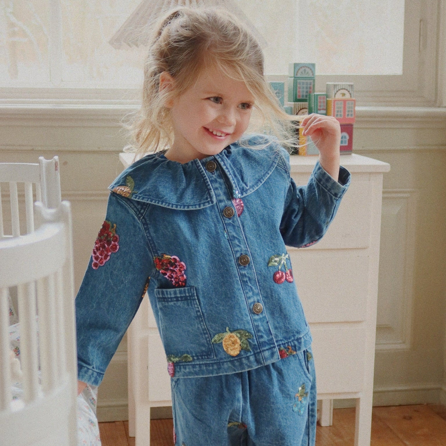 Konges Slojd - Kurtka jeansowa Magot z cekinowymi owocami, vitamins