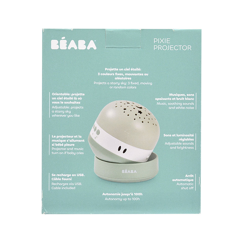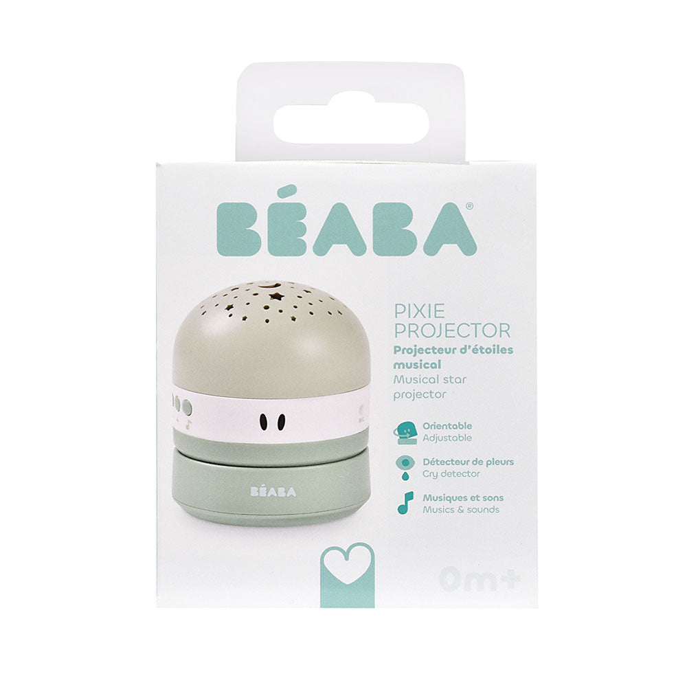 Beaba - Projektor gwiazd z pozytywką i czujnikiem płaczu Pixie, Sage green