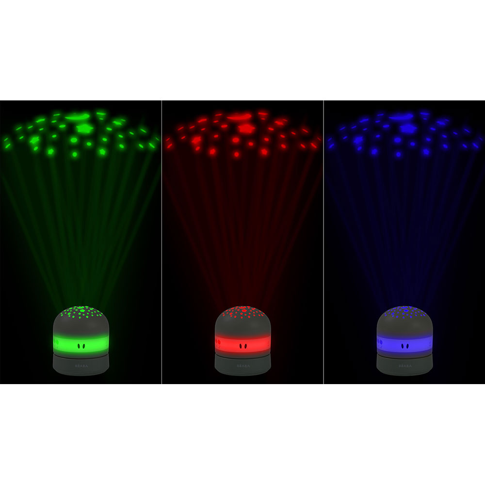 Projektor gwiazd Pixie francuskiej marki BEABA to kompaktowe urządzenie, które pomaga stworzyć w pokoju dziecka spokojną, przyjazną atmosferę sprzyjającą zasypianiu. Wyświetla rozgwieżdżone niebo w trzech kolorach – czerwonym, zielonym i niebieskim – z możliwością wyboru światła stałego, zmieniającego się lub losowego. Dzięki regulowanemu kątowi projekcji można skierować obraz na sufit, ścianę lub wybrane miejsce w pomieszczeniu.