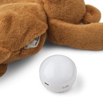 Miś pluszowy HATTIE to delikatna pomoc w usypianiu maluszka, łącząca przytulankę, kojącą lampkę nocną i odtwarzacz dźwięków. Wykonany z wyjątkowo miękkiego pluszu z certyfikatem GRS, jest bezpieczny i przyjemny w dotyku. W brzuszku królika ukryta jest ciepła lampka LED, a wbudowany moduł odtwarza 8 uspokajających dźwięków, takich jak biały i różowy szum, śpiew ptaków czy szum fal.
