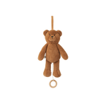 Miękka pozytywka w kształcie misia, idealna do rytuałów uspokajania i zasypiania. Urocza i przyjemna w dotyku. Po pociągnięciu za sznurek odtwarza kołysankę Brahmsa. Wyposażona w sznurki do zawieszenia.