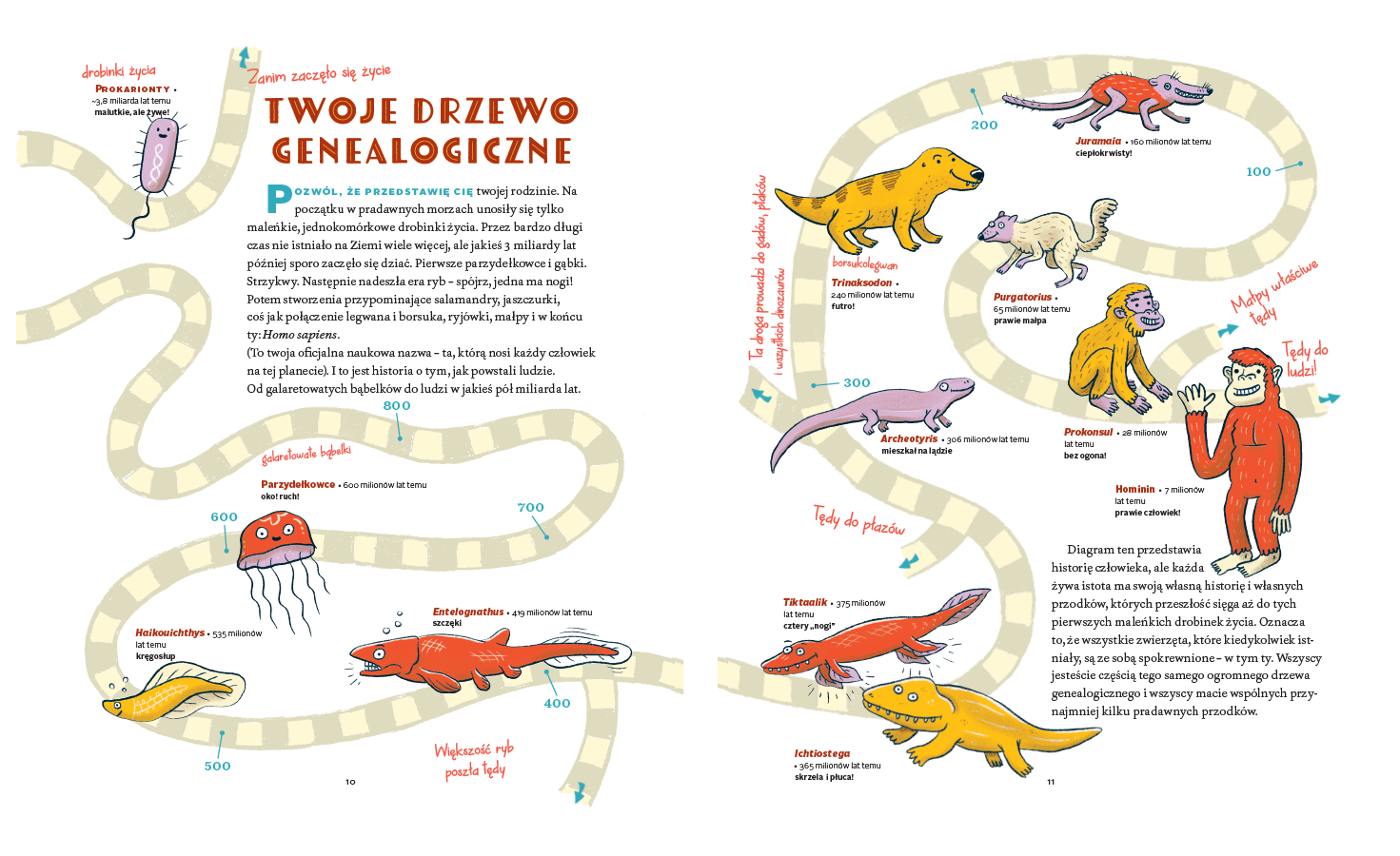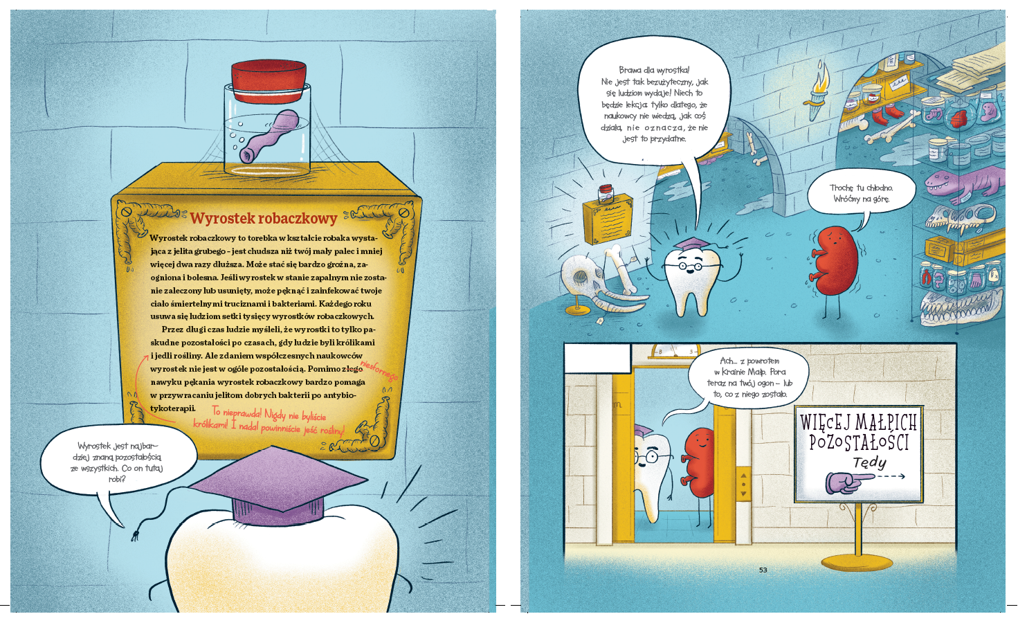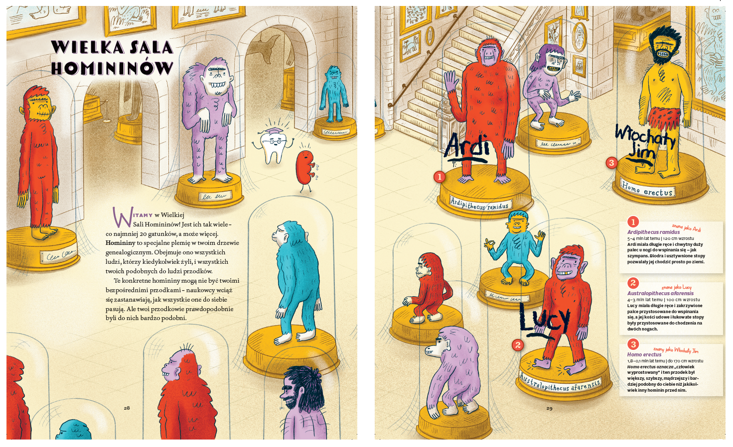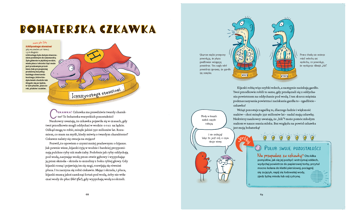 Po tym Muzeum Dziwacznych Pozostałości w Ciele oprowadzą cię przewodnicy turystyczni – Ząb Mądrości i Znikająca Nerka. Pokażą zwariowane muzeum poświęcone małpim mięśniom, kikutom ogonów, czkawce, eksplodującym organom, szkorbutowi i wszystkim innym pozostałościom, które mamy w ciele – i opowiedzą ich historie z zamierzchłej przeszłości. Zanim dotrzecie do sklepu z pamiątkami, zrozumiecie, że ewolucja jest chaotyczna, niedoskonała i nieustająca. Nasze ciała reagują na warunki środowiska i stale się zmieniają, a jest tak wiele rzeczy wciąż nieznanych, które tylko czekają, żeby je odkryć.