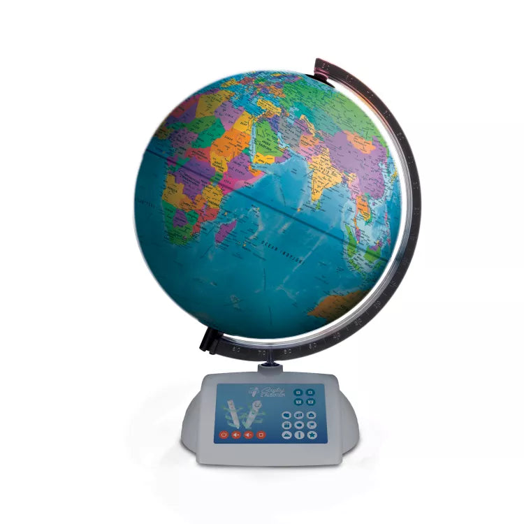 Globus znany był już w starożytności. Stworzył go genialny matematyk, fizyk i astronom – Archimedes. Powstające przez wieki globusy stawały się coraz dokładniejsze. Globus, który masz  przed  sobą,  doskonale  odzwierciedla  mapę  świata, a  do  tego  potrafi  mówić.  Archimedes  z  pewnością  byłby zaskoczony!