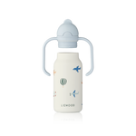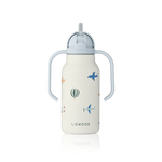 Liewood - Butelka / bidon stalowy ze słomką z dwoma uchwytami Kimmie 250 ml Aviator / Ecru