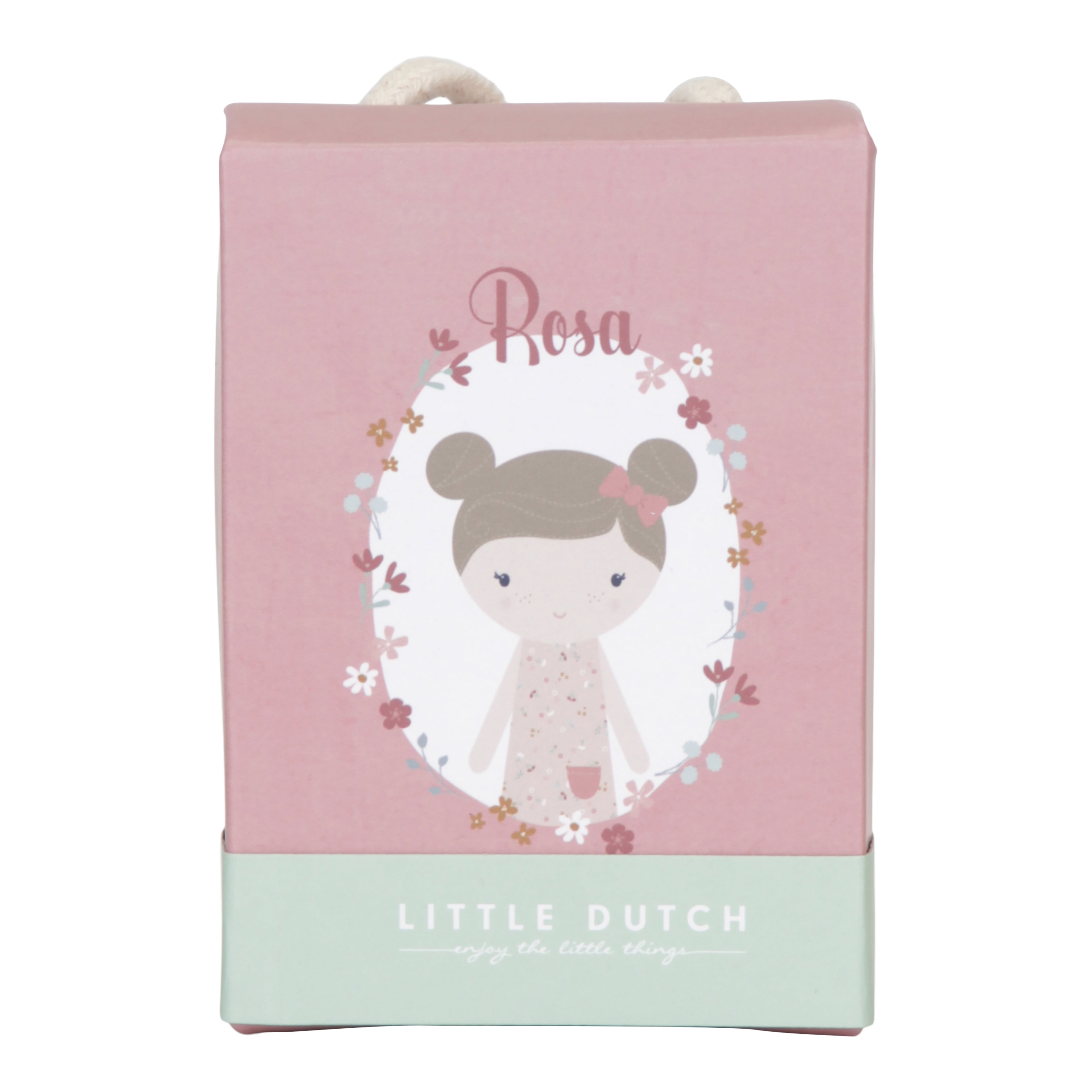 Ta urocza lalka jest zapakowana w piękne, kartonowe pudełeczko ze sznurkiem, co czyni ją doskonałym prezentem. Do kompletu można dokupić również lalkę Rosa w rozmiarze 35 lub 50 cm. Będzie stanowić świetne uzupełnienie do pozostałych zabawek z kolekcji Little Pink Flowers.