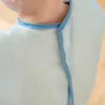 Fartuszek jest łatwy w zakładaniu i zdejmowaniu, dzięki bezpiecznemu zapięciu na rzep z tyłu oraz praktycznym ściągaczom na rękawach. Wykonany z nylonu, jest wygodny w noszeniu i łatwy w czyszczeniu.