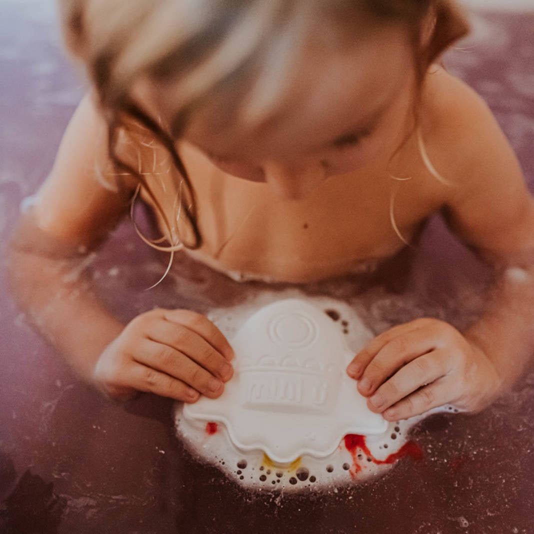 Kąpielowa kula do kąpieli w kształcie rakiety posiada naturalny skład i jest bezpieczna dla Twojego malucha. Nie zawiera SLS, SLES oraz parabenów, czyli czynników potencjalnie drażniących delikatną i wrażliwą skórę maluchów. Jej łagodne barwniki i substancje zapachowe zostały dobrane z najwyższą starannością i nie powodują podrażnień. Nie musisz martwić się również o zabarwioną skórę lub wannę. Kosmiczna rakieta dzięki swoim delikatnym składnikom może być stosowana nawet codziennie.