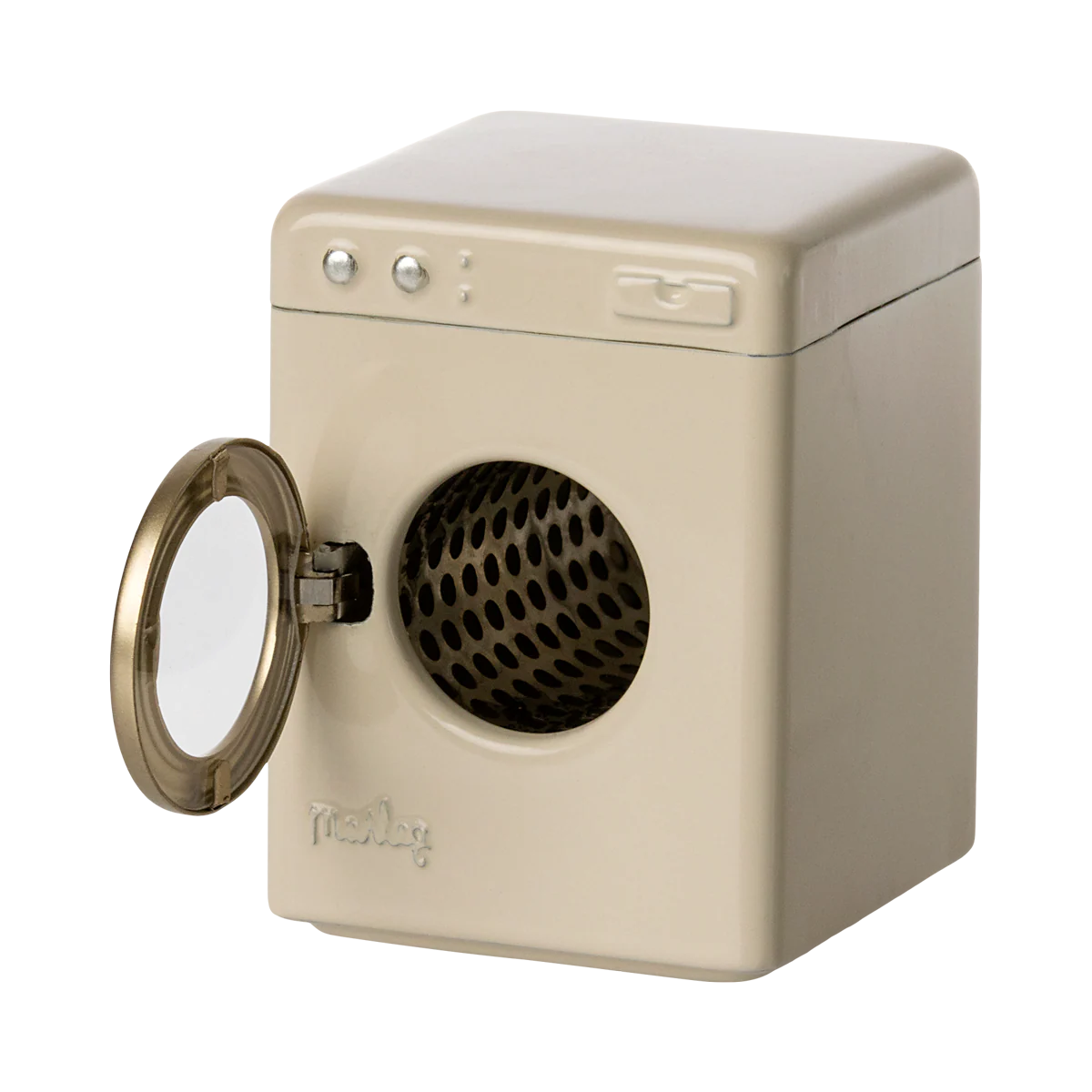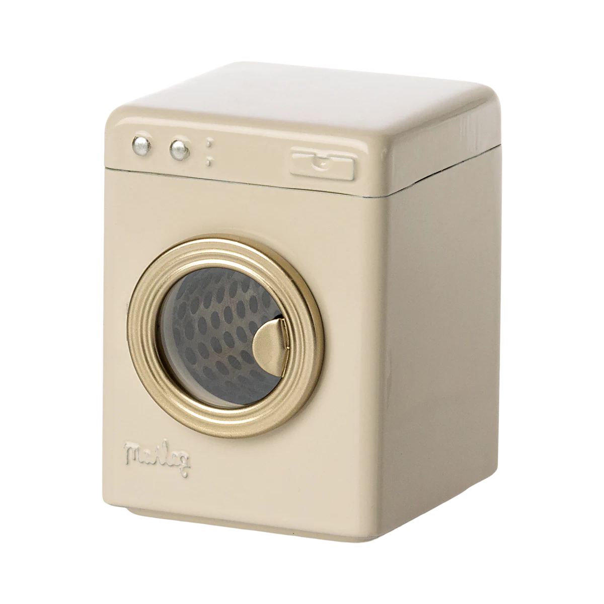 Każda zapracowana rodzina potrzebuje pomocnika do prania – ta miniaturowa pralka to idealne rozwiązanie! Wykonana z metalu i pomalowana na klasyczny, złamany biały kolor, zachwyca detalami, które dodają realizmu każdej zabawie. Doskonale pasuje do domku dla myszek Maileg i świetnie sprawdzi się w codziennych scenkach z życia małej rodziny.
