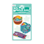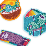 Trzy kolorowe łatki ooly, które można naprasować, nakleić bądź naszyć na ubrania, obuwie, torby, plecaki itp. akcesoria by nadać im indywidualny charakter.