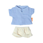 Miniland Komplet Ubranek – Błękitna Koszulka i Kremowe Spodenki (dla lalki 32 cm)