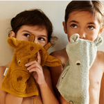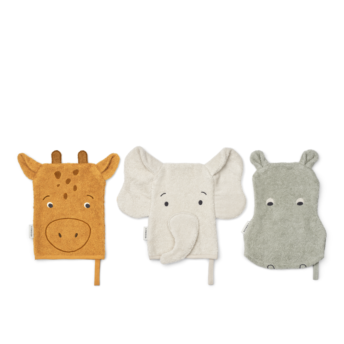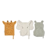 Zestaw trzech myjek w kształcie przyjaznych zwierzątek idealnie sprawdzi się podczas codziennej pielęgnacji niemowląt i starszych dzieci. Bawełna organiczna frotte, z której zostały uszyte myjki jest niezwykle chłonna, miękka i delikatna dla wrażliwej skóry dziecka.