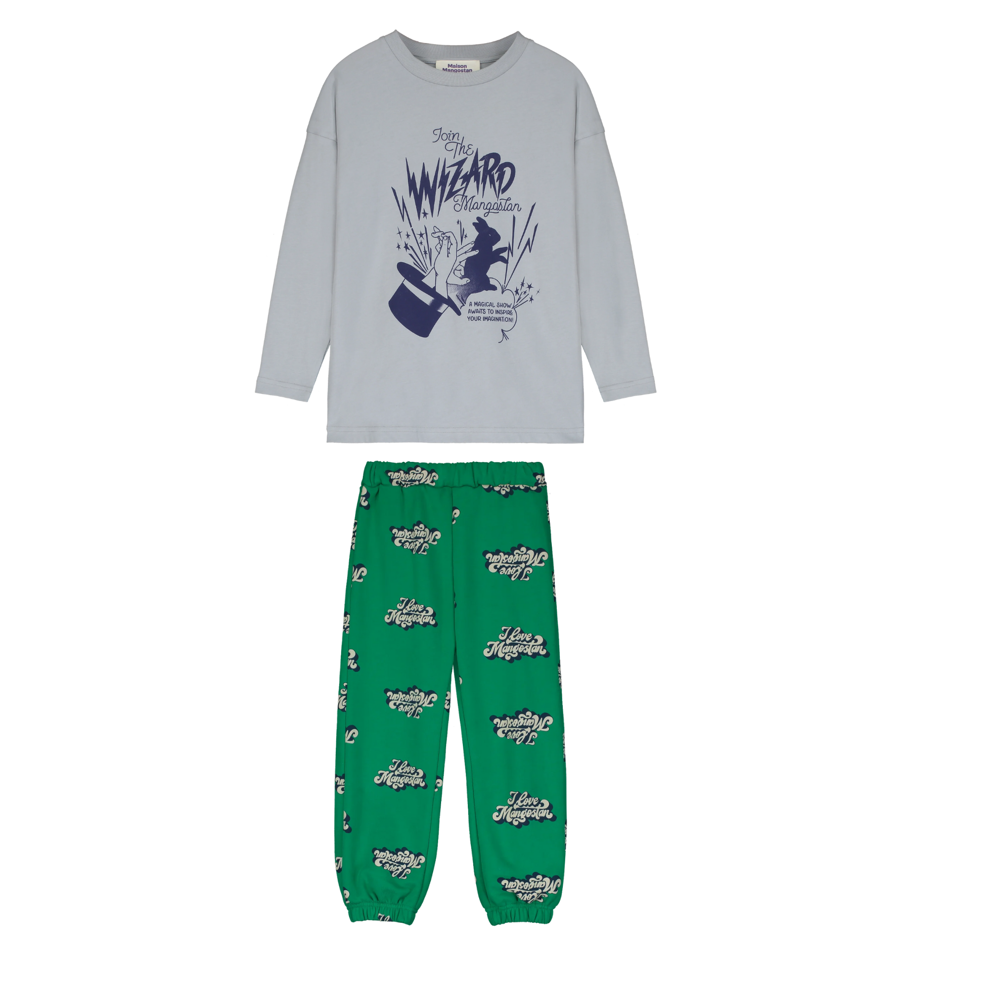 Zestaw Maison Mangostan – T-shirt Wizard Long Grey + spodnie dresowe I LOVE Green