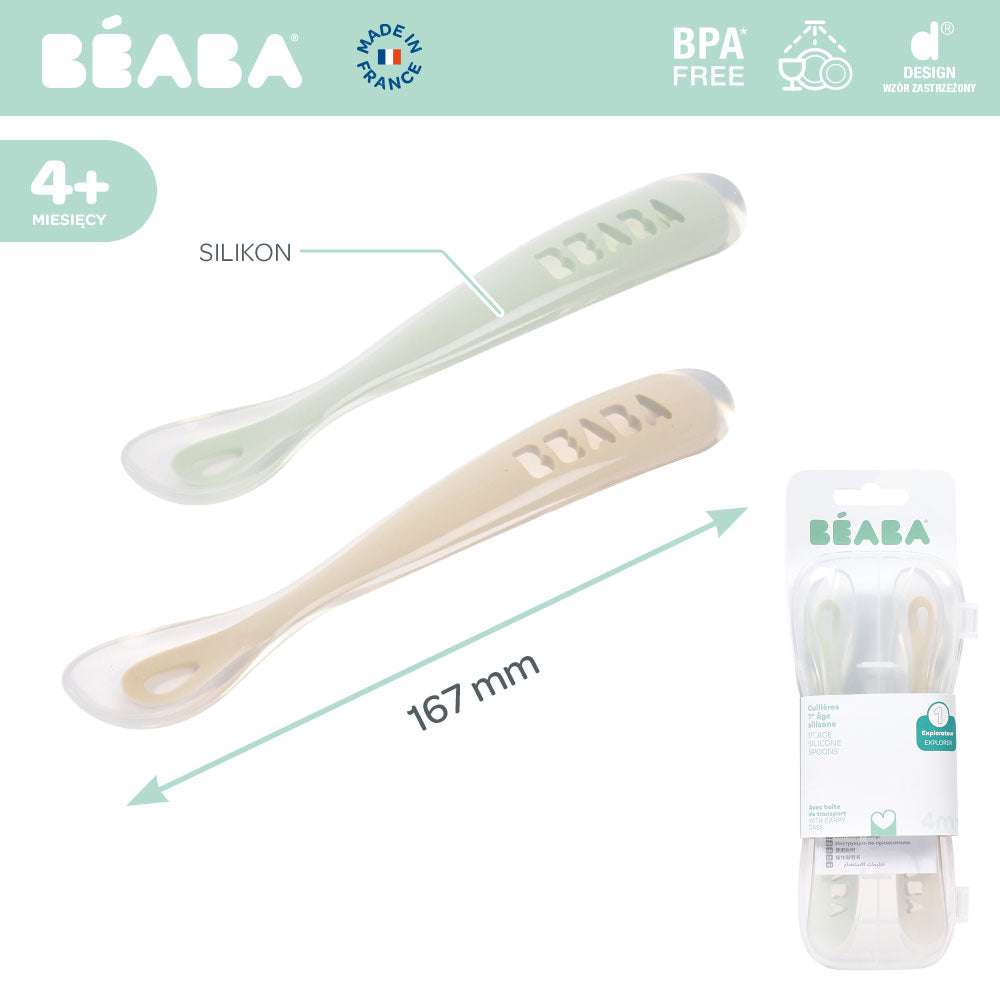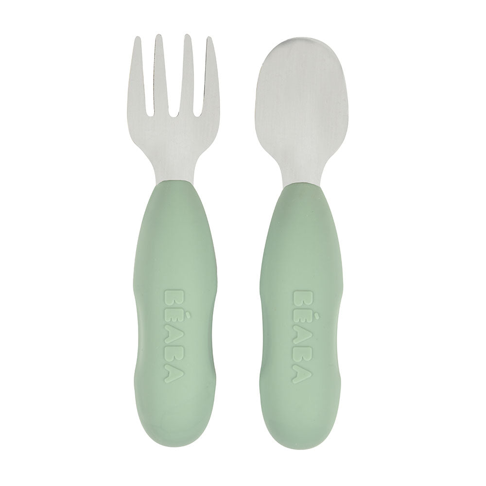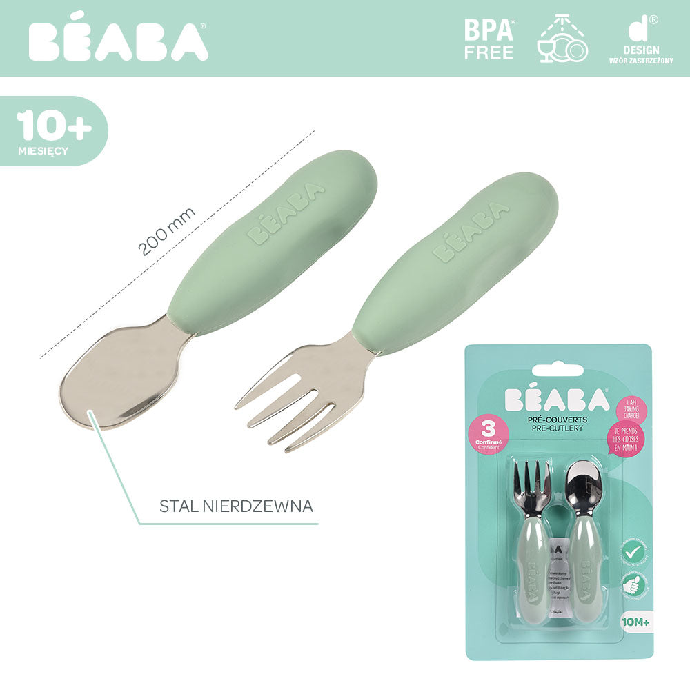 Beaba - Zestaw pierwszych sztućców ze stali nierdzewnej, Sage green