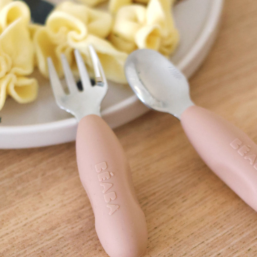 Beaba - Zestaw pierwszych sztućców ze stali nierdzewnej, Cotton candy