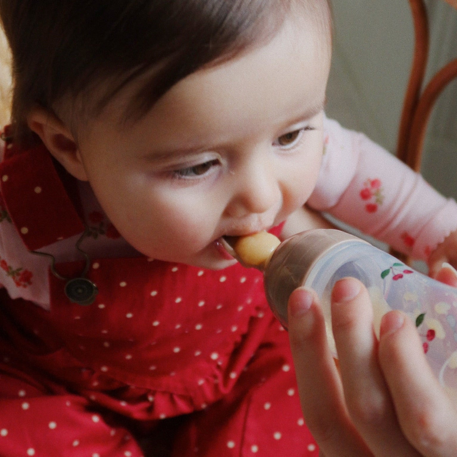 Praktyczny zestaw do karmienia niemowląt Konges Sløjd to wygodne rozwiązanie dla rodziców rozpoczynających przygodę z rozszerzaniem diety. Miękka, silikonowa butelka pozwala w łatwy sposób dozować odpowiednią ilość przecieru czy papki – wystarczy delikatnie nacisnąć, a pokarm trafia bezpośrednio na dołączoną łyżeczkę. Ergonomiczny kształt łyżeczki sprawia, że jest wygodna zarówno dla malucha, jak i rodzica.