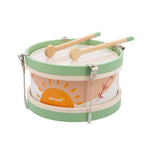 Drewniany bębenek z serii Sunshine francuskiej marki JANOD to idealna pierwsza zabawka muzyczna dla dziecka, która pomaga rozwijać słuch, poczucie rytmu oraz zdolności muzyczne. Wspiera także rozwój wyobraźni, koncentracji, wytrwałości i koordynacji ruchowej. Bębenek ma drewnianą konstrukcję, wzmocnioną metalowymi uchwytami, poręczny rozmiar, dwa patyczki do wystukiwania rytmu i piękną słoneczną kolorystykę – na brzegach namalowane jest małe lwiątko Leo oraz pomarańczowe odciski łap.