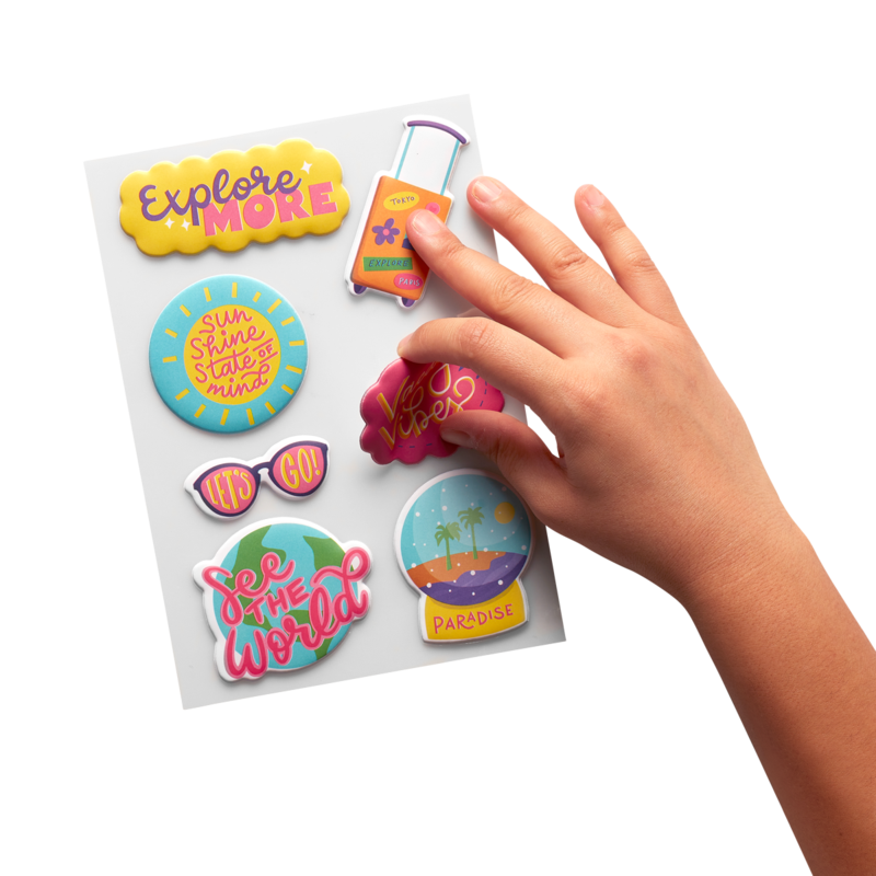 Idealny do dekorowania dzienników, pamiętników, plannerów podróży, a także nudnych walizek! Rozpocznij uśmiechniętą, naklejkową zabawę!
