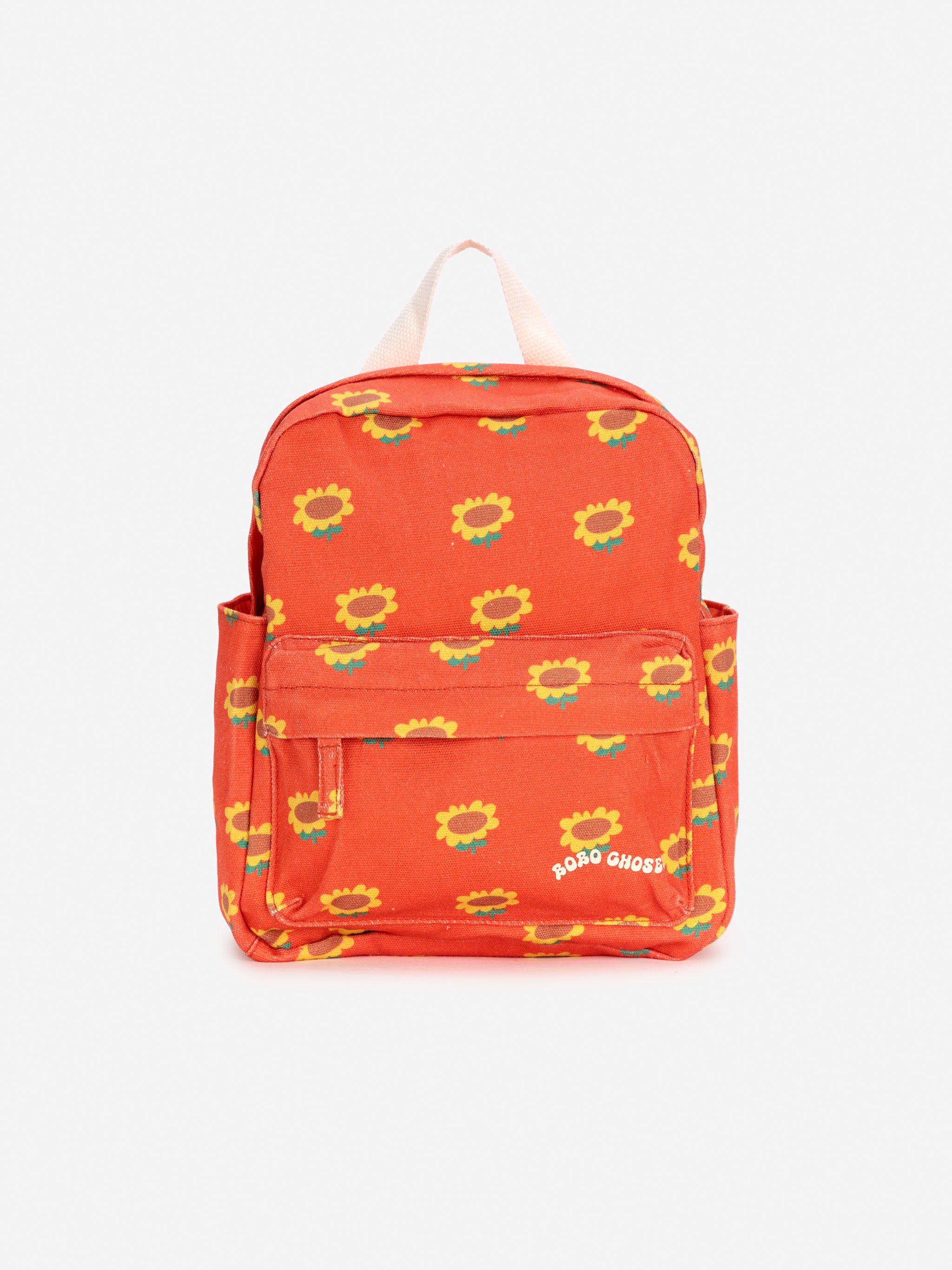 Ten słonecznikowy plecak, wykonany w 100% z poliestru z recyklingu, łączy styl z dbałością o środowisko.