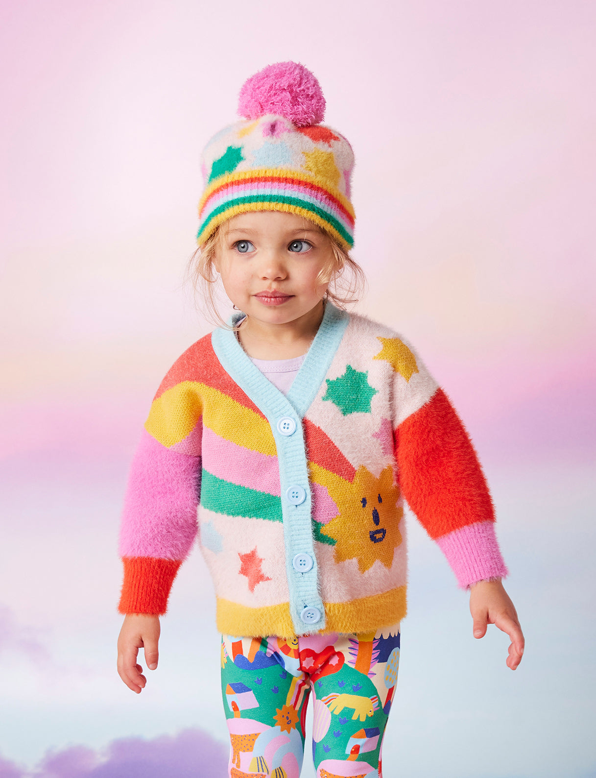 Ciepły i miękki kardigan, który zapewni dziecku komfort w chłodniejsze dni. Posiada klasyczne zapięcie na guziki, subtelne, puszyste wykończenie oraz ilustracje z kolekcji Halcyon Nights po obu stronach. Trwały, łatwy w pielęgnacji i odporny na pranie – zachowuje swój kształt, by cieszyć przez wiele sezonów