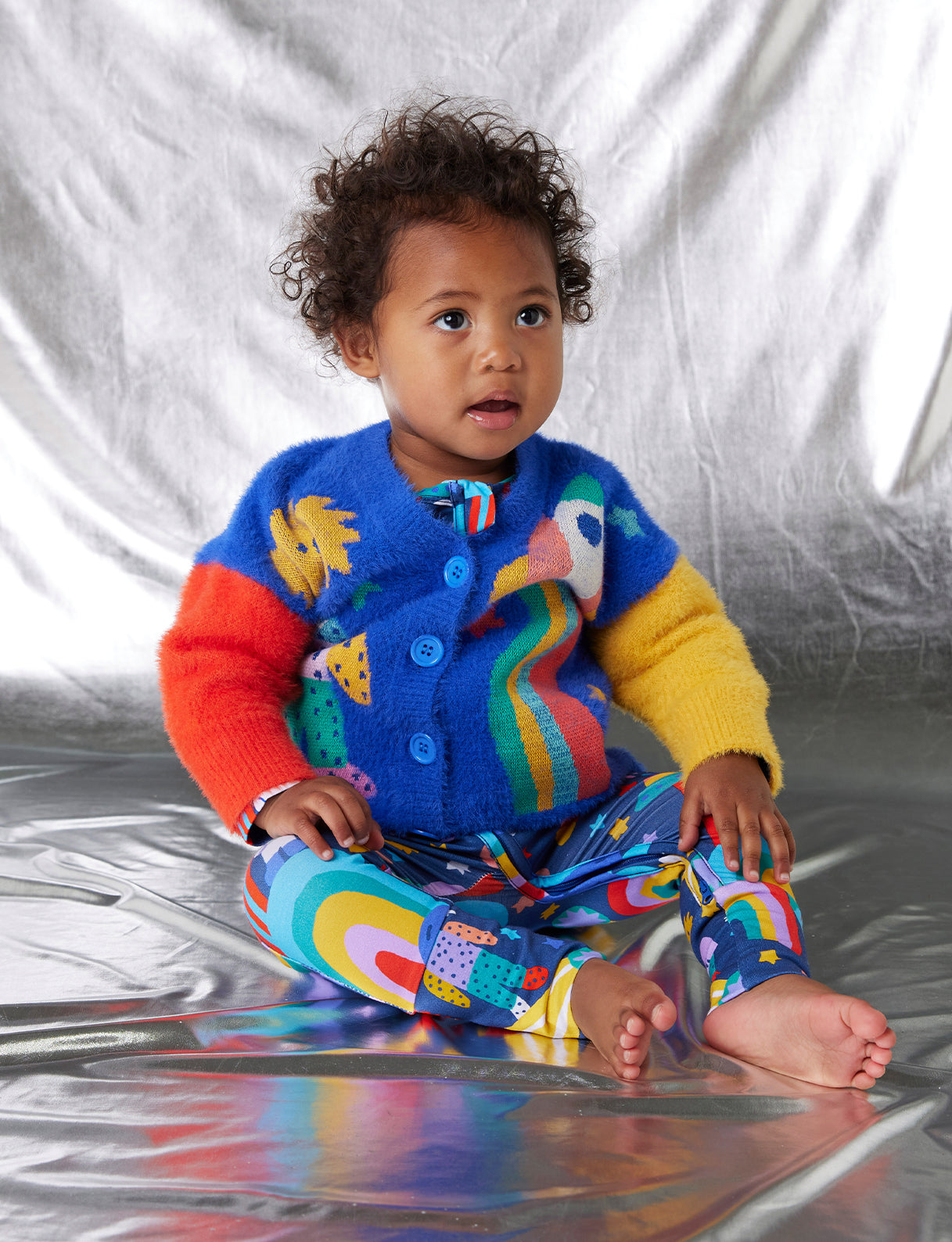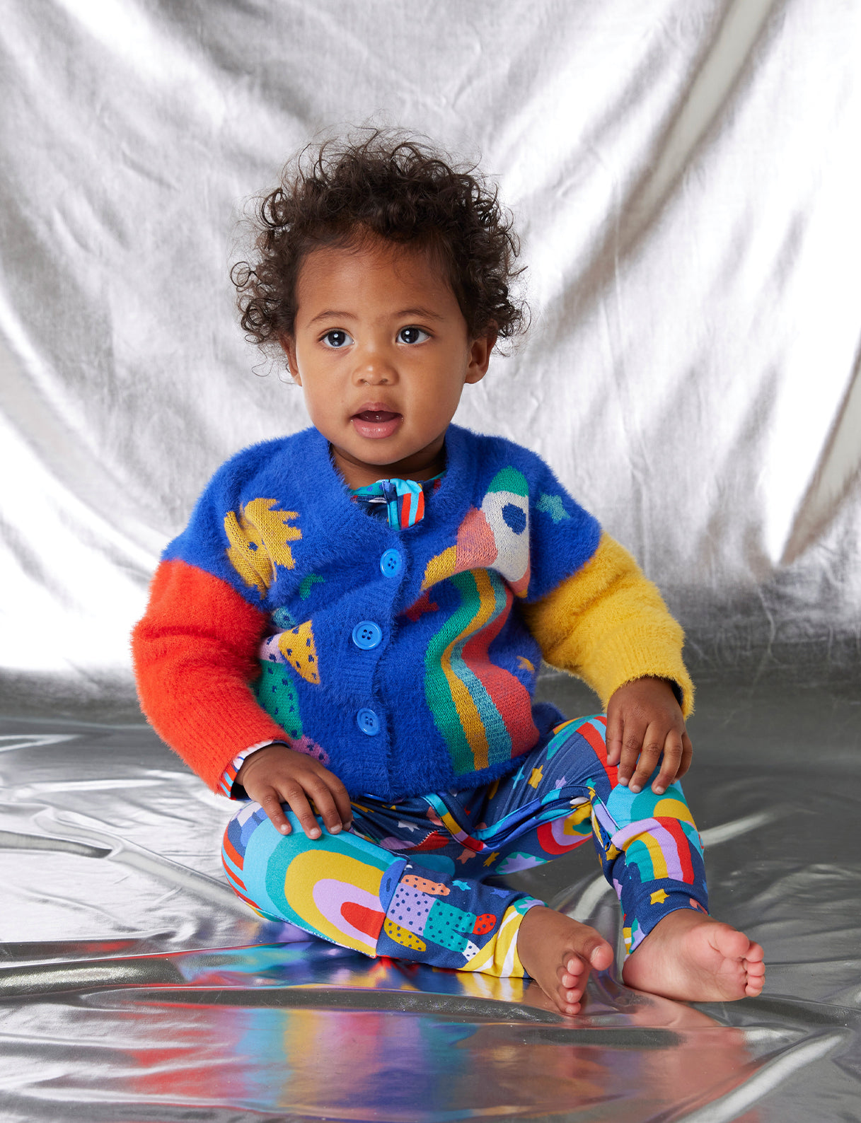 Ciepły i miękki kardigan, który zapewni dziecku komfort w chłodniejsze dni. Posiada klasyczne zapięcie na guziki, subtelne, puszyste wykończenie oraz ilustracje z kolekcji Halcyon Nights po obu stronach. Trwały, łatwy w pielęgnacji i odporny na pranie – zachowuje swój kształt, by cieszyć przez wiele sezonów