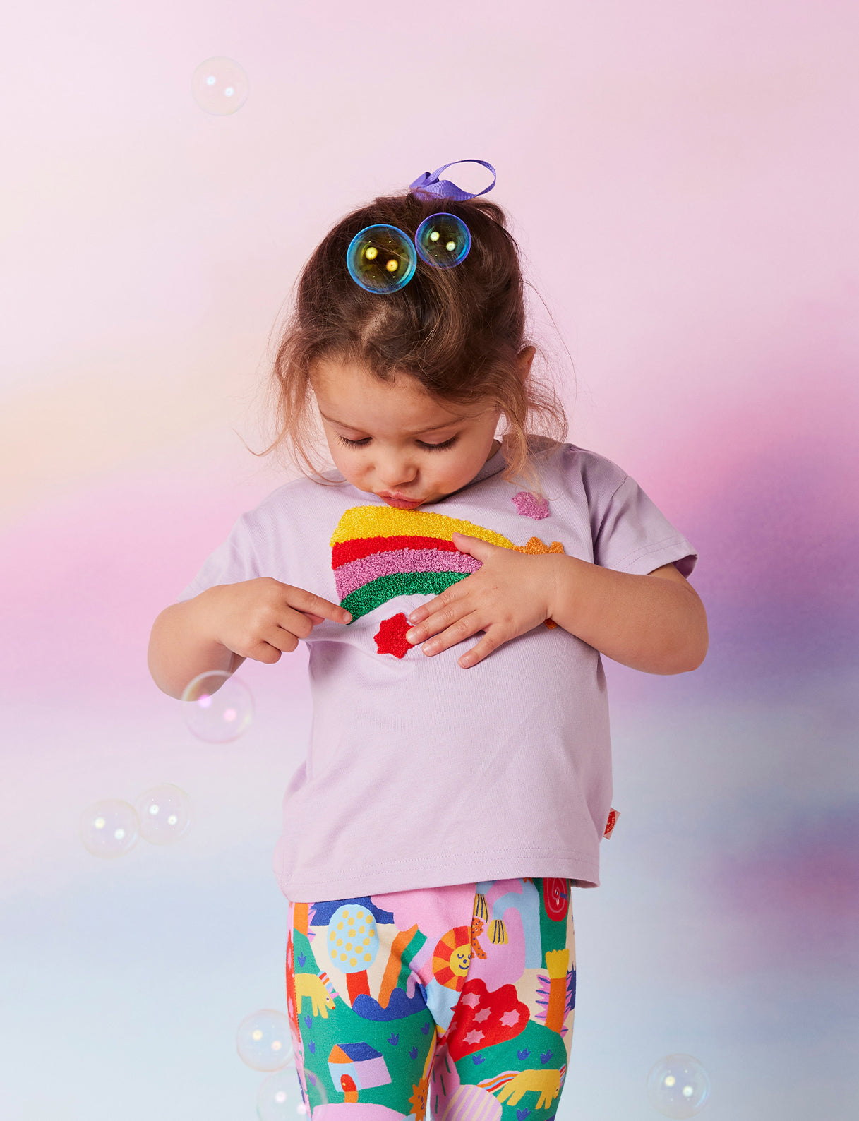 Halcyon Nights - Bawełniany, miękki t-shirt z aplikacją Rainbow Valley