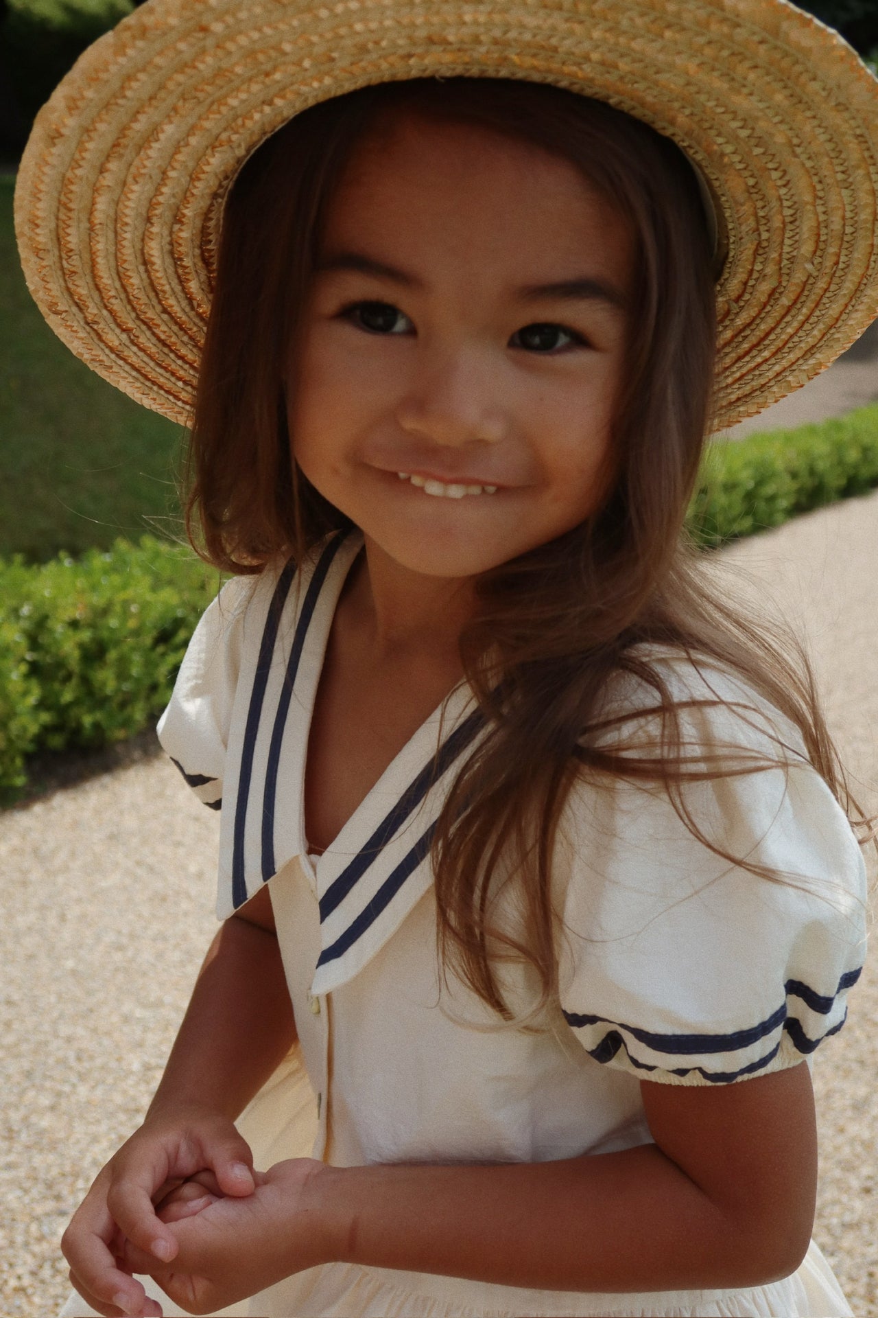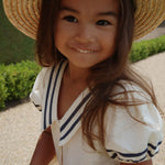 Klasyczny słomkowy kapelusz z szerokim rondem, który nie tylko chroni przed słońcem, ale też dodaje uroku każdej letniej stylizacji. Wykończony dekoracyjną bawełnianą tasiemką – subtelny detal w stylu Konges Sløjd.