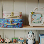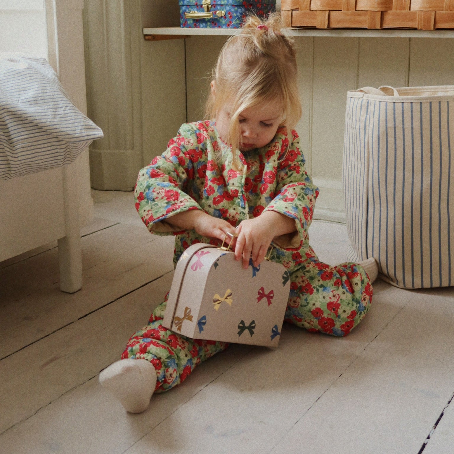 Zestaw dwóch tekturowych kuferków Konges Sløjd to uroczy dodatek do dziecięcych zabaw i przechowywania skarbów. Wykonane z wytrzymałej tektury i wyposażone w metalowy uchwyt, świetnie sprawdzą się zarówno jako element zabawy w podróż, jak i praktyczne miejsce na drobiazgi. Mniejsza walizka mieści się w większej, co ułatwia przechowywanie.