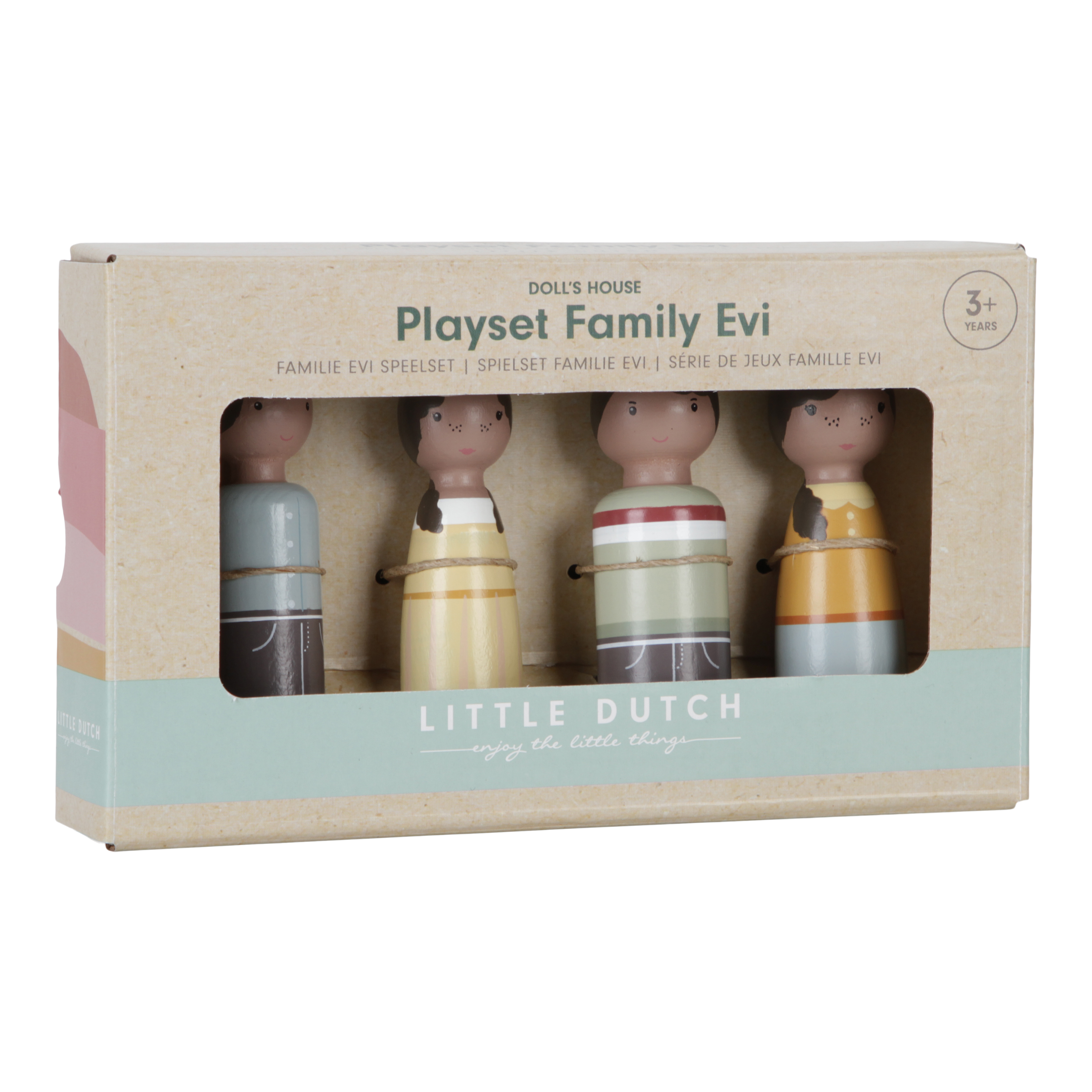 Zestaw do domku rodzina Evi od Little Dutch. Poznaj rodzinę Evi - to zestaw drewnianych laleczek, składający się z taty, mamy, syna i córki Evi, która jest Wam doskonale znana!