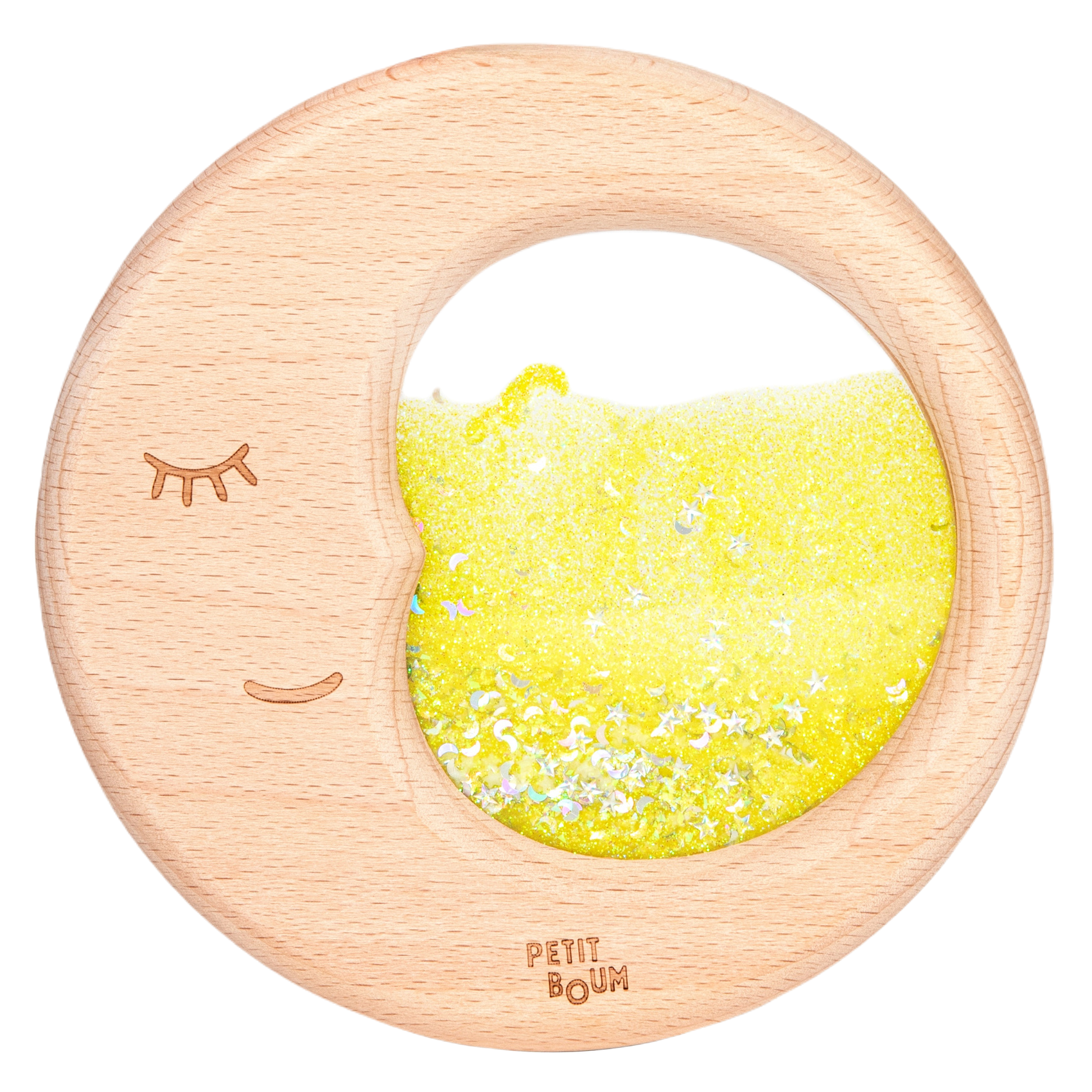 Złocisty, piękny księżyc w pełni został stworzony ręcznie w Hiszpanii. Całość wykończono starannie wyszlifowanym drewnem, co nie tylko zwiększa walory estetyczne produktu i pozytywnie wpływa na trwałość zabawki, ale także sprawia, że produkt jest niezwykle przyjemny w dotyku. Księżyc przepływowy to piękna mieszanka brokatu i piasku fluorescencyjnego, które połyskują w połączeniu ze światłem. Spróbuj naświetlić księżyc, a odkryjesz niewidoczne wcześniej gwiazdki fluorescencyjne wirujące w brokatowym płynie w złocistym kolorze. To zdecydowanie efekt WOW, który zachwyci dzieci i rodziców!