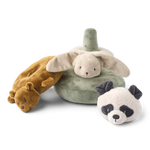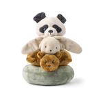 Miękka, pluszowa wieża do układania SANNIE to zabawka, która wspiera rozwój małej motoryki i koordynacji ruchowej dziecka. Każdy element ma kształt sympatycznego zwierzątka i kryje w sobie sensoryczne niespodzianki – szeleszczącą tkaninę oraz dzwoneczki, które zachęcają do odkrywania i zabawy.