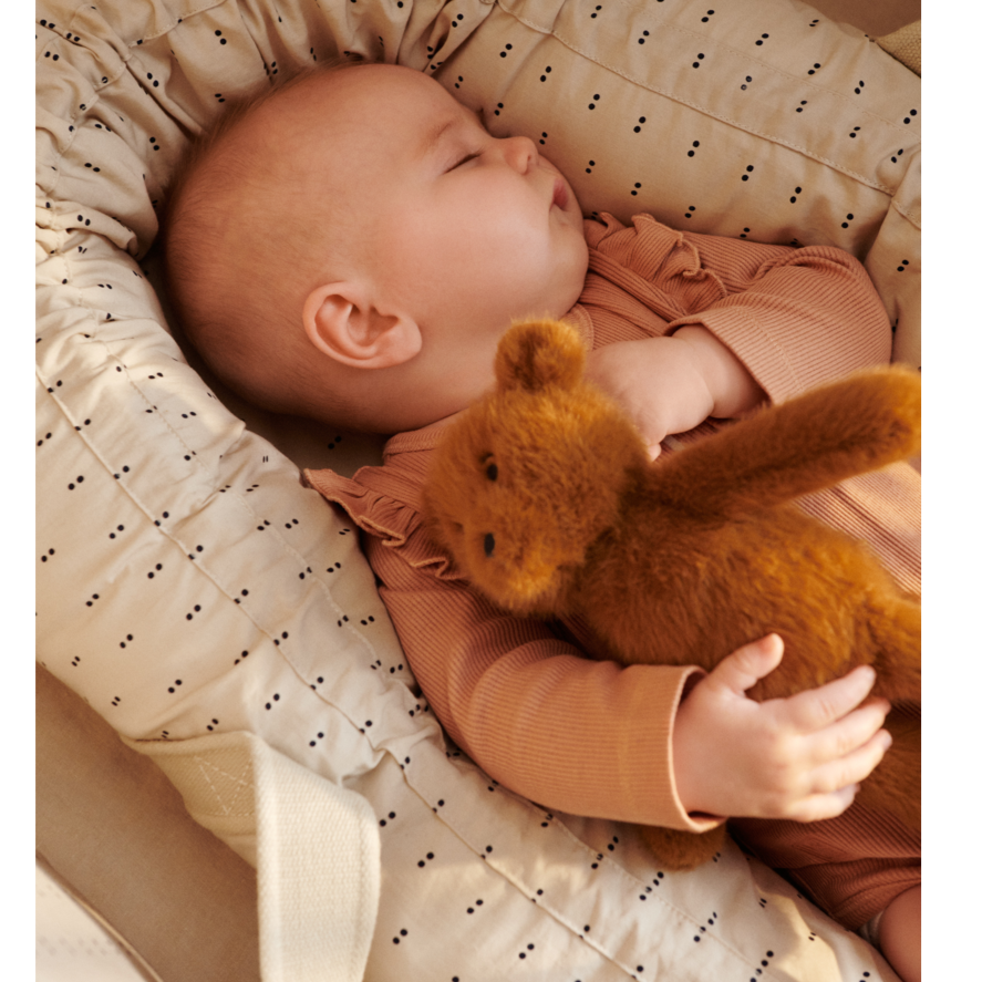 Mały pluszowy miś BINNIE wykonany z niezwykle miękkiego pluszu z certyfikatem GRS (Global Recycled Standard). To ponadczasowy towarzysz zabaw i przytulania, odpowiedni dla niemowląt i małych dzieci. Na łapce znajduje się subtelne haftowane zdobienie w kształcie misia. Można go połączyć z większą wersją BINNIE, tworząc uroczą pluszową rodzinę. Doskonały pomysł na prezent.