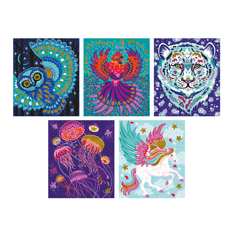 Janod - Zestaw kreatywny Brokat i piasek Błyszczące zwierzęta 7+