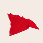 Wyjątkowo miękka czerwona bandana, wykonana z najwyższej jakości wełny merino. Trójkątny krój z otworem. Kontrastowy haft z logotypem.