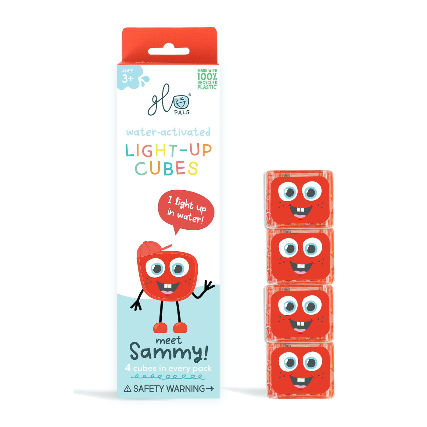 Glo Pals - Kostki sensoryczne świecące w wodzie Sammy- zabawka kąpielowa, kolor czerwony