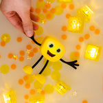 Ten wesoły kumpel kąpieli to idealny towarzysz podczas zabaw w wodzie oraz eksplorowania różnych doznań sensorycznych przez Twoje dziecko. W zestawie znajdują się 2 świecące kostki w tym samym kolorze, które dodają dodatkowej atrakcji podczas kąpieli.