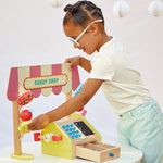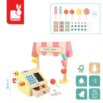 Drewniany sklep-cukierenka z kolekcji Applepop francuskiej marki JANOD to idealny prezent dla każdego dziecka, które lubi bawić się w zakupy i naśladowanie dorosłych. Zabawka wspomaga rozwój na wielu płaszczyznach: ćwiczy zdolności manualne, uczy cierpliwości oraz koncentracji, wspiera wyobraźnię i umiejętności społeczne. Ponadto dzięki miejscom na segregowane produktów maluch przyswaja sobie również umiejętność porządkowania rzeczy. W skład zestawu wchodzą: mały straganik do ustawienia np. na stole, 6 sztuk drewnianych słodkości (3 rodzaje), kasa z 9 banknotami i 15 kartonowymi monetami, 2 kredy.