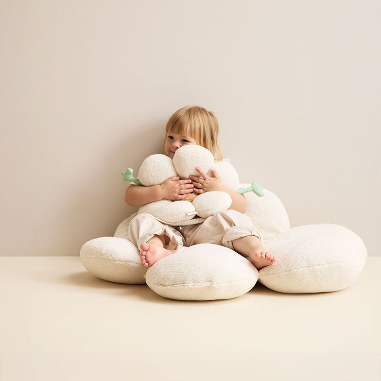 Ta poduszka w kształcie stokrotki ma dwie twarze - jedną radosną i w pełni rozbudzoną, drugą spokojną i senną. W zależności od pory dnia (lub nastroju) wystarczy ją odwrócić, aby dopasować ją do chwili.