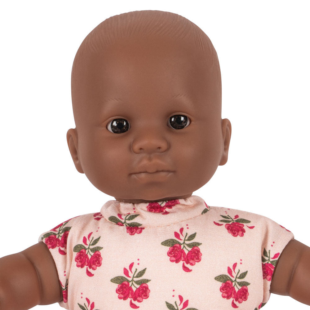 Materiały: Lalka: winyl. Ubranie: bawełna. Wypełnienie: poliester. Smoczek: PP.