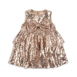 Sukienka ROSIE w odcieniu smoke gray to prawdziwa definicja elegancji i dziecięcej radości w jednym. Zaprojektowana z połyskującymi cekinami na całej powierzchni i dużą, efektowną kokardą z przodu, od razu przyciąga wzrok i sprawia, że mała właścicielka poczuje się jak gwiazda wieczoru.